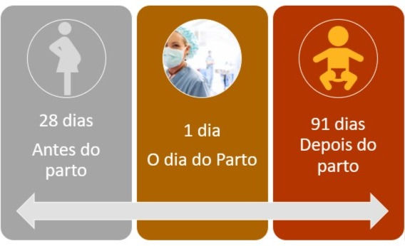 O Salário-Maternidade é um benefício devido a SEGURADA, durante 120 (cento e vinte) dias, com início de 28 (vinte e oito) dias antes e termino 91 (noventa e um) dias depois do parto. Mesmo em caso de parto antecipado, esse benefício será concedido por 120 (cento e vinte) dias à segurada.